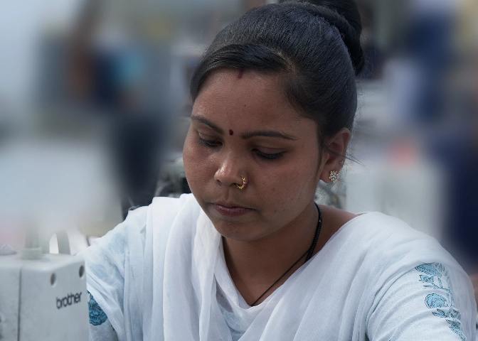 In the bustling markets of Santosh Nagar and Gautum Nagar, Parveen’s husband will always be found selling clothes for babies. Ever since Parveen got married, she has supported her husband by doing home-based work, specialising in stitching clothes, especially undergarments for children. While her husband ventures into the streets every day to sell their creation, Parveen takes care of their precious daughter and diligently sews 50 to 70 pieces of clothing each week.